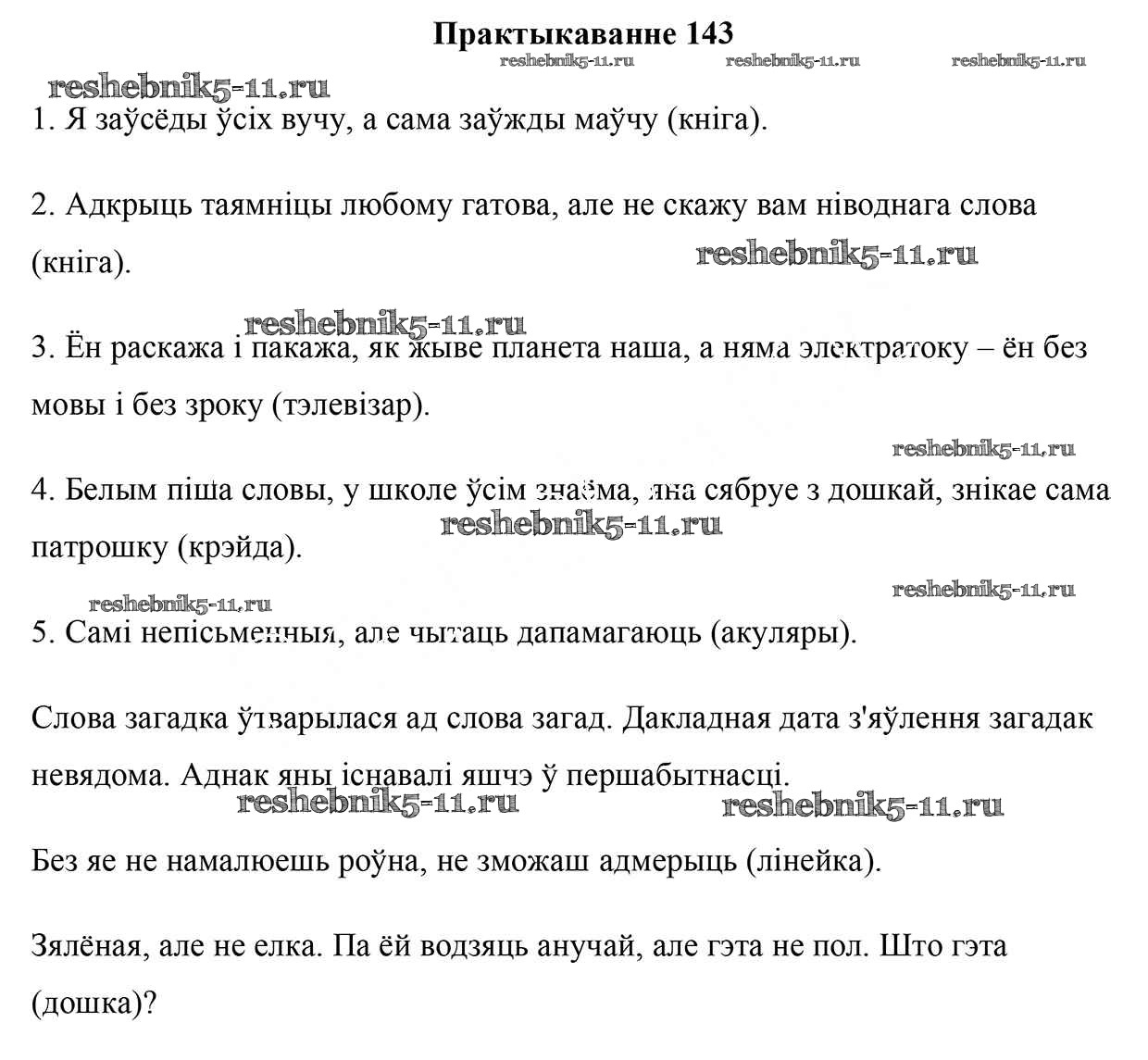 Готовая домашняя работа с ответами по Белорусскому языку за 5 класс Валочка, Зелянко, Мартынкевіч, Якуба Учебник Часть 1, 2 Национальный институт образования 2019 ФГОС - Часть 1. Практыкаванні 143
