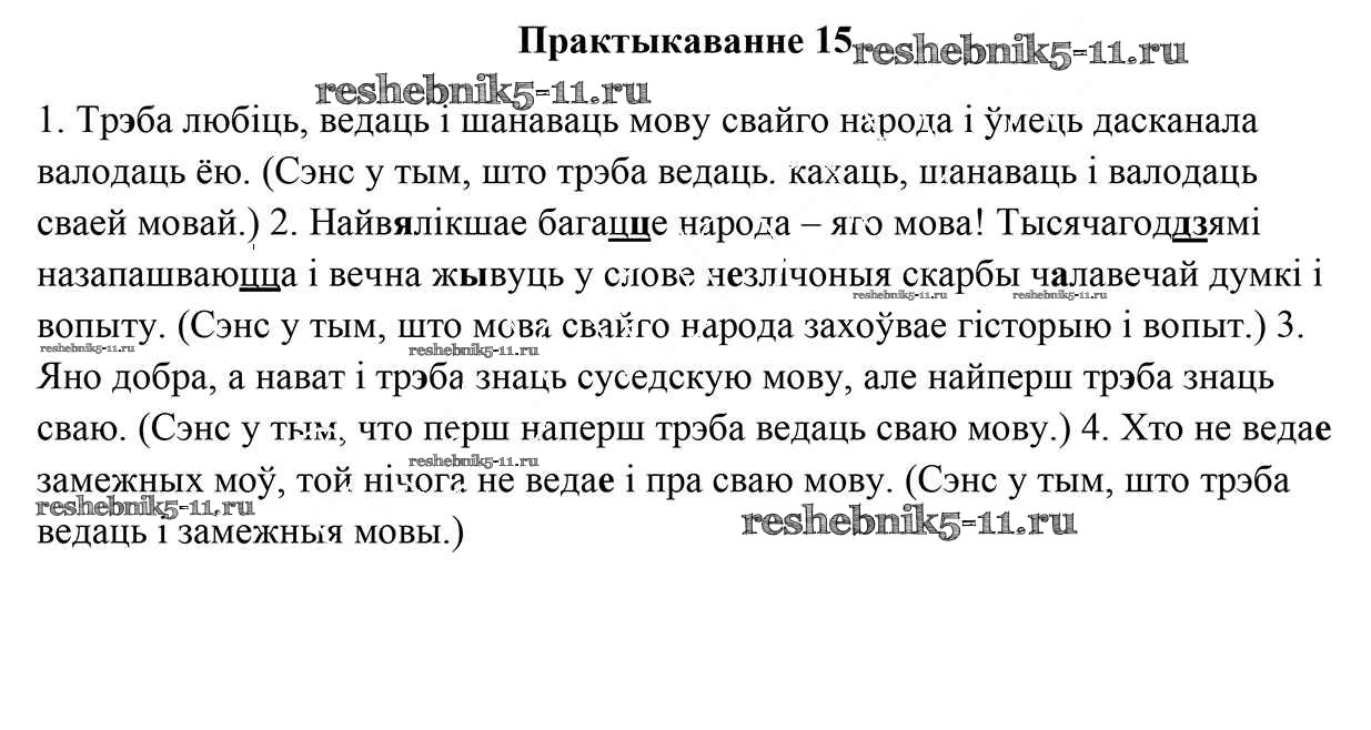 Готовая домашняя работа с ответами по Белорусскому языку за 5 класс Валочка, Зелянко, Мартынкевіч, Якуба Учебник Часть 1, 2 Национальный институт образования 2019 ФГОС - Часть 1. Практыкаванні 15