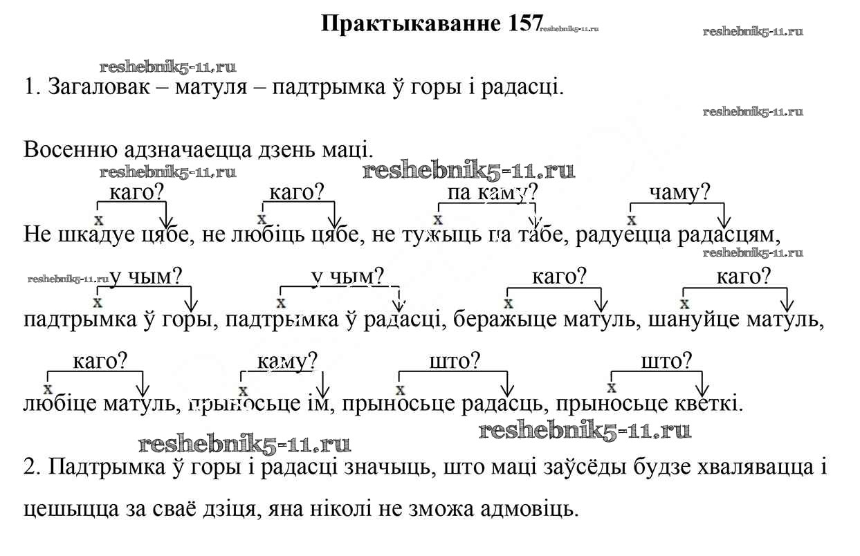 Готовая домашняя работа с ответами по Белорусскому языку за 5 класс Валочка, Зелянко, Мартынкевіч, Якуба Учебник Часть 1, 2 Национальный институт образования 2019 ФГОС - Часть 1. Практыкаванні 157