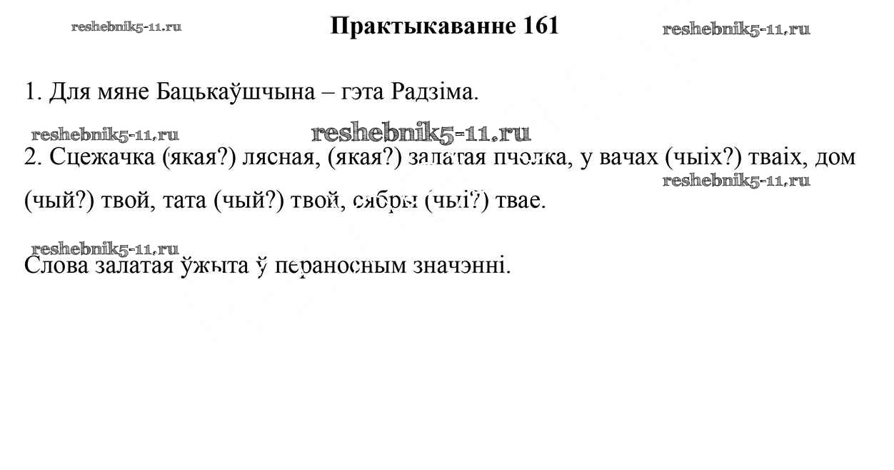 Готовая домашняя работа с ответами по Белорусскому языку за 5 класс Валочка, Зелянко, Мартынкевіч, Якуба Учебник Часть 1, 2 Национальный институт образования 2019 ФГОС - Часть 1. Практыкаванні 161