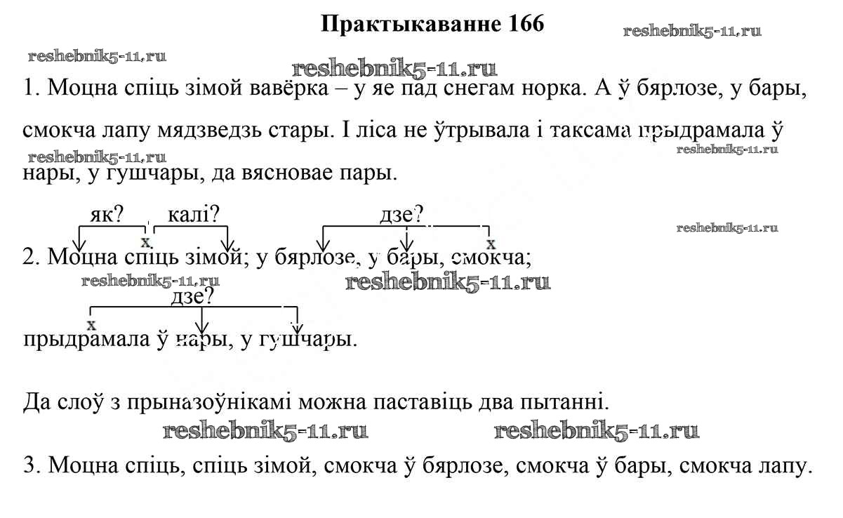 Готовая домашняя работа с ответами по Белорусскому языку за 5 класс Валочка, Зелянко, Мартынкевіч, Якуба Учебник Часть 1, 2 Национальный институт образования 2019 ФГОС - Часть 1. Практыкаванні 166
