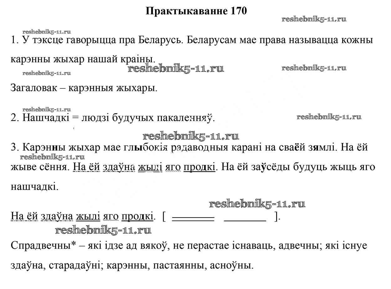 Готовая домашняя работа с ответами по Белорусскому языку за 5 класс Валочка, Зелянко, Мартынкевіч, Якуба Учебник Часть 1, 2 Национальный институт образования 2019 ФГОС - Часть 1. Практыкаванні 170