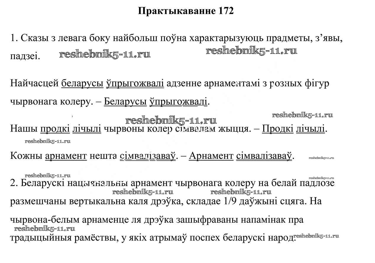 Готовая домашняя работа с ответами по Белорусскому языку за 5 класс Валочка, Зелянко, Мартынкевіч, Якуба Учебник Часть 1, 2 Национальный институт образования 2019 ФГОС - Часть 1. Практыкаванні 172