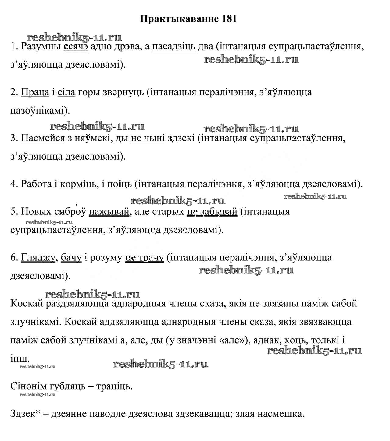 Готовая домашняя работа с ответами по Белорусскому языку за 5 класс Валочка, Зелянко, Мартынкевіч, Якуба Учебник Часть 1, 2 Национальный институт образования 2019 ФГОС - Часть 1. Практыкаванні 181