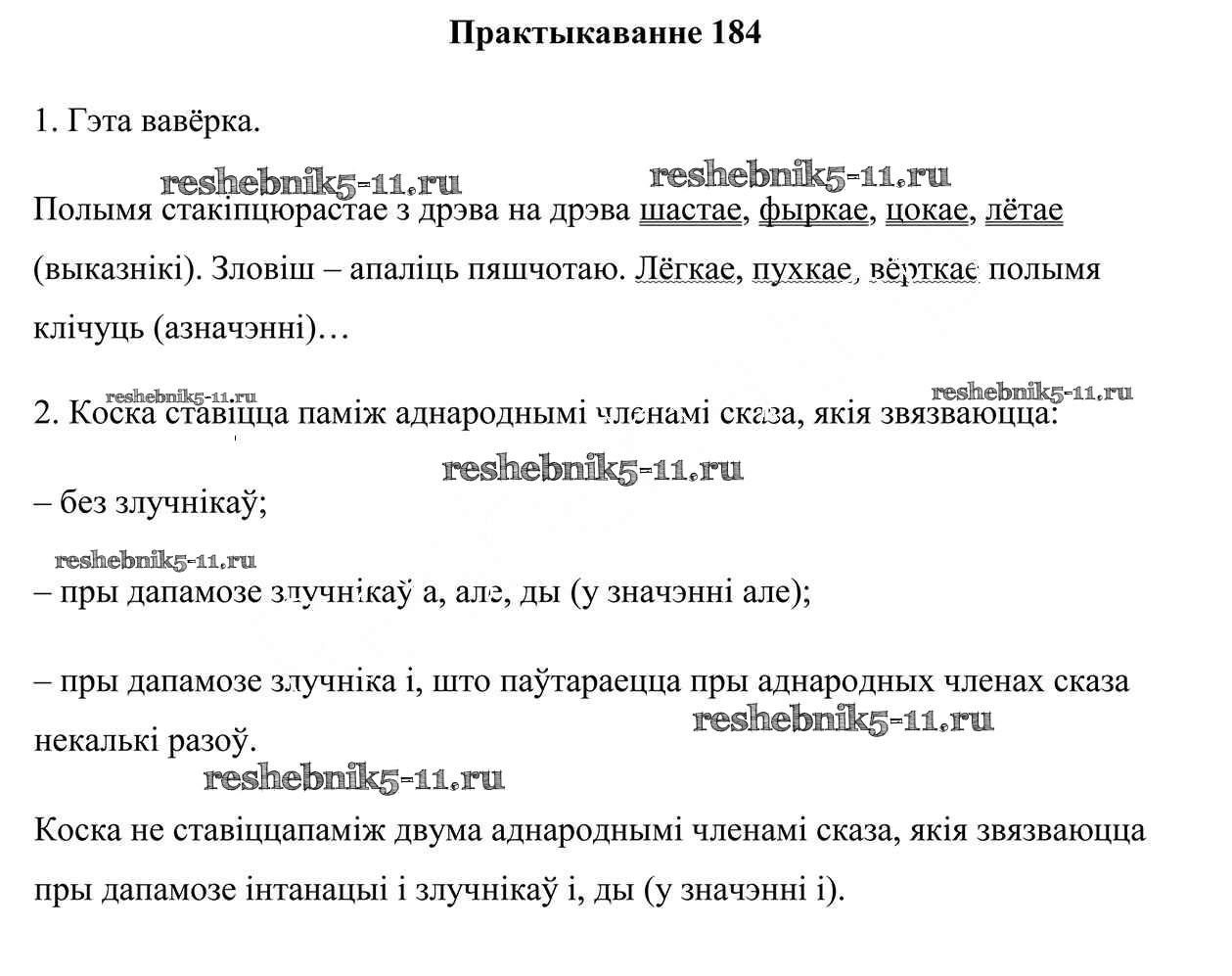 Готовая домашняя работа с ответами по Белорусскому языку за 5 класс Валочка, Зелянко, Мартынкевіч, Якуба Учебник Часть 1, 2 Национальный институт образования 2019 ФГОС - Часть 1. Практыкаванні 184