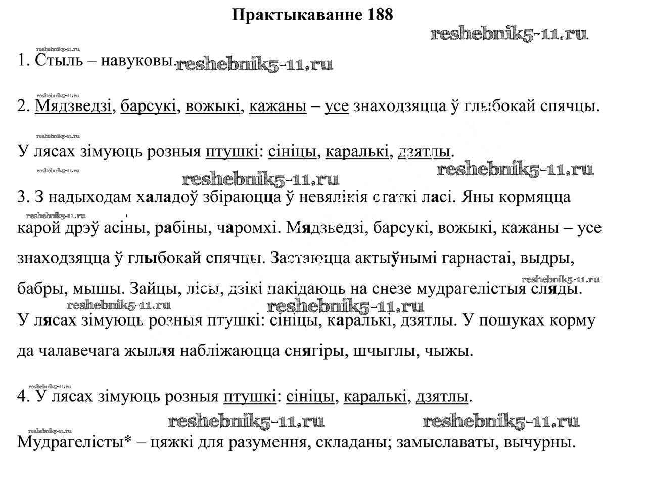 Белорусский язык за 5 класс Валочка Учебник Национальный институт образования часть 1. практыкаванні 188
