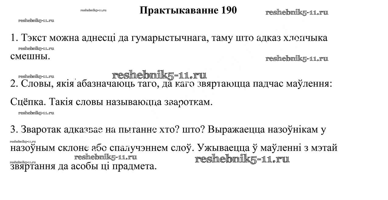 Готовая домашняя работа с ответами по Белорусскому языку за 5 класс Валочка, Зелянко, Мартынкевіч, Якуба Учебник Часть 1, 2 Национальный институт образования 2019 ФГОС - Часть 1. Практыкаванні 190