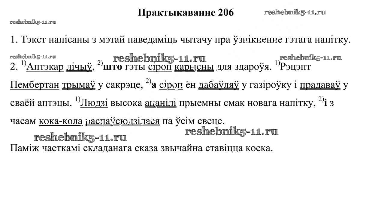 Готовая домашняя работа с ответами по Белорусскому языку за 5 класс Валочка, Зелянко, Мартынкевіч, Якуба Учебник Часть 1, 2 Национальный институт образования 2019 ФГОС - Часть 1. Практыкаванні 206