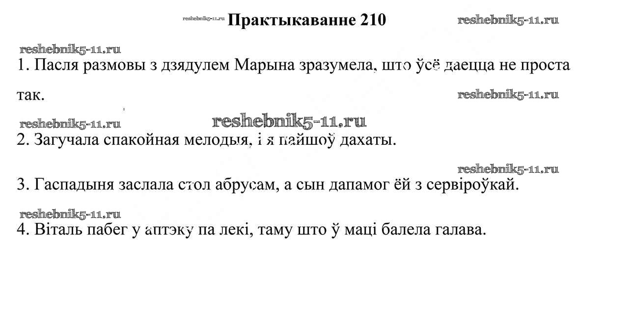 Готовая домашняя работа с ответами по Белорусскому языку за 5 класс Валочка, Зелянко, Мартынкевіч, Якуба Учебник Часть 1, 2 Национальный институт образования 2019 ФГОС - Часть 1. Практыкаванні 210