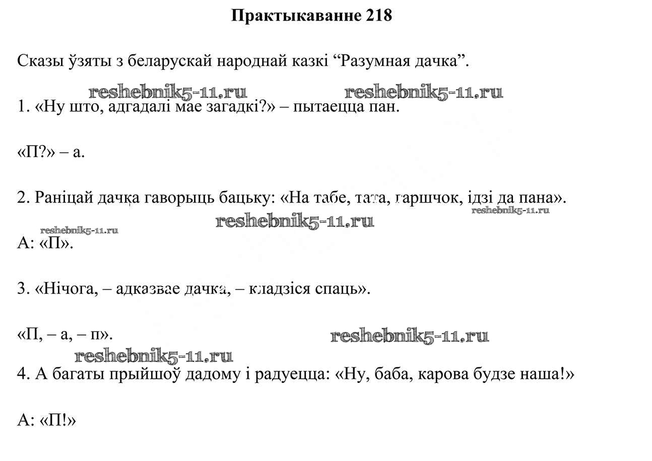 Готовая домашняя работа с ответами по Белорусскому языку за 5 класс Валочка, Зелянко, Мартынкевіч, Якуба Учебник Часть 1, 2 Национальный институт образования 2019 ФГОС - Часть 1. Практыкаванні 218