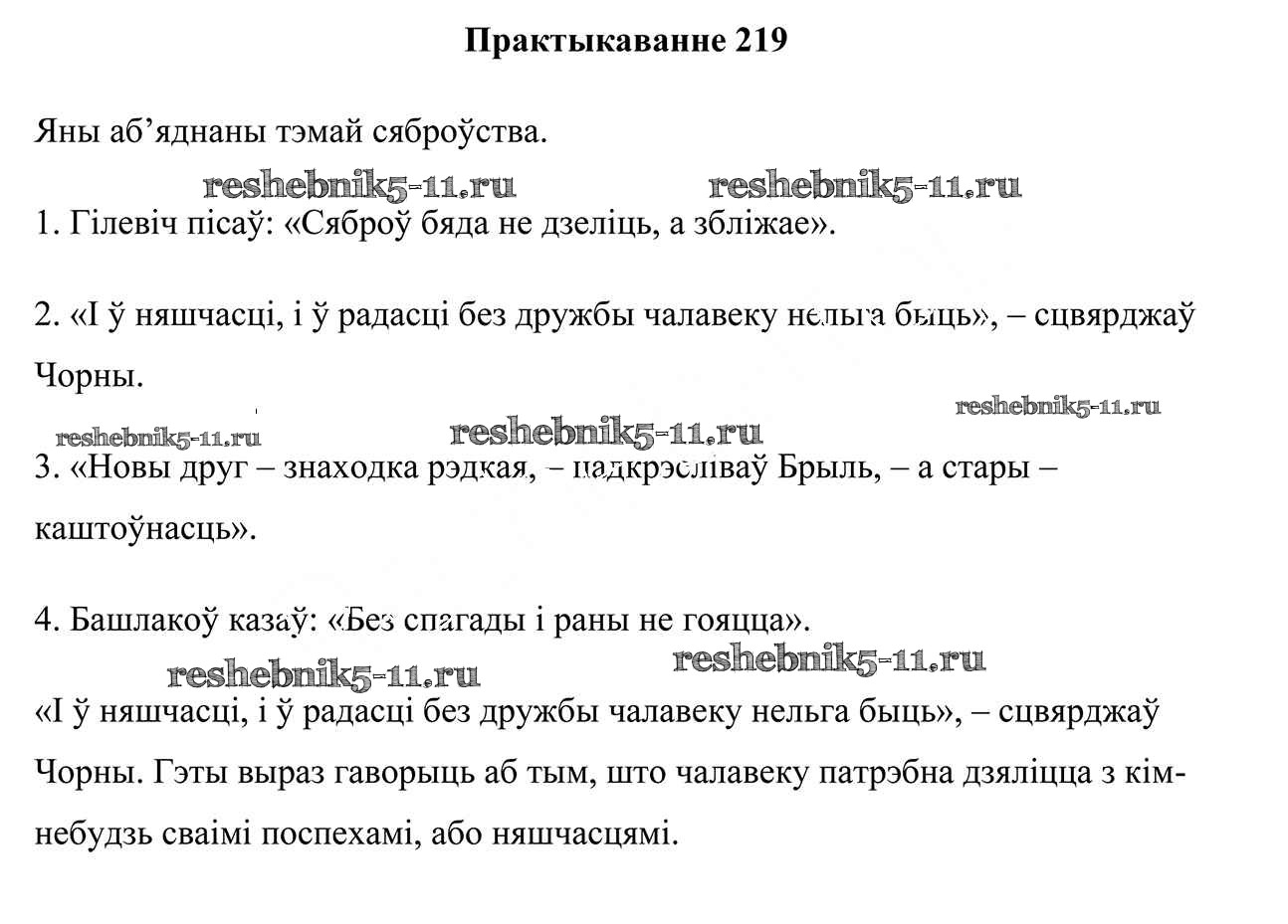Готовая домашняя работа с ответами по Белорусскому языку за 5 класс Валочка, Зелянко, Мартынкевіч, Якуба Учебник Часть 1, 2 Национальный институт образования 2019 ФГОС - Часть 1. Практыкаванні 219