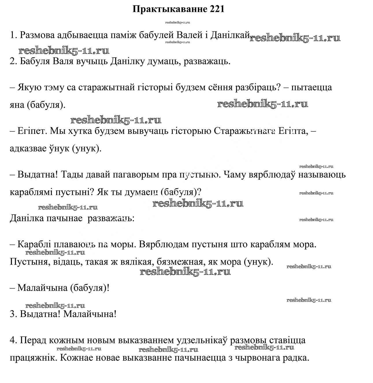 Готовая домашняя работа с ответами по Белорусскому языку за 5 класс Валочка, Зелянко, Мартынкевіч, Якуба Учебник Часть 1, 2 Национальный институт образования 2019 ФГОС - Часть 1. Практыкаванні 221