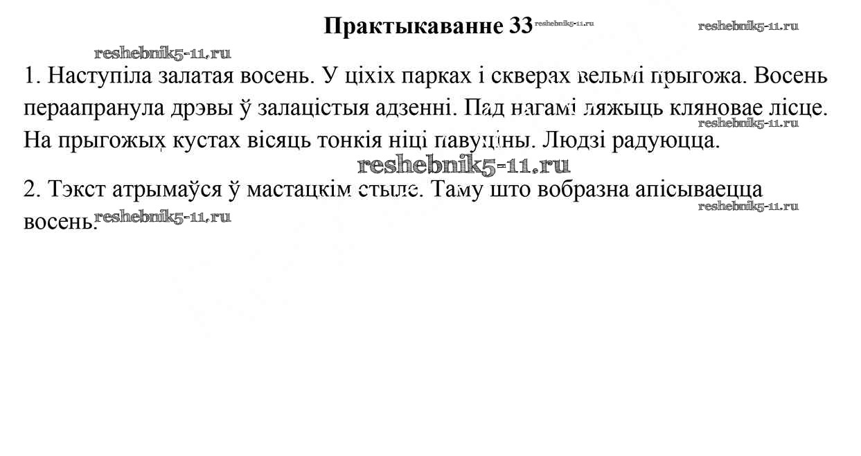 Готовая домашняя работа с ответами по Белорусскому языку за 5 класс Валочка, Зелянко, Мартынкевіч, Якуба Учебник Часть 1, 2 Национальный институт образования 2019 ФГОС - Часть 1. Практыкаванні 33