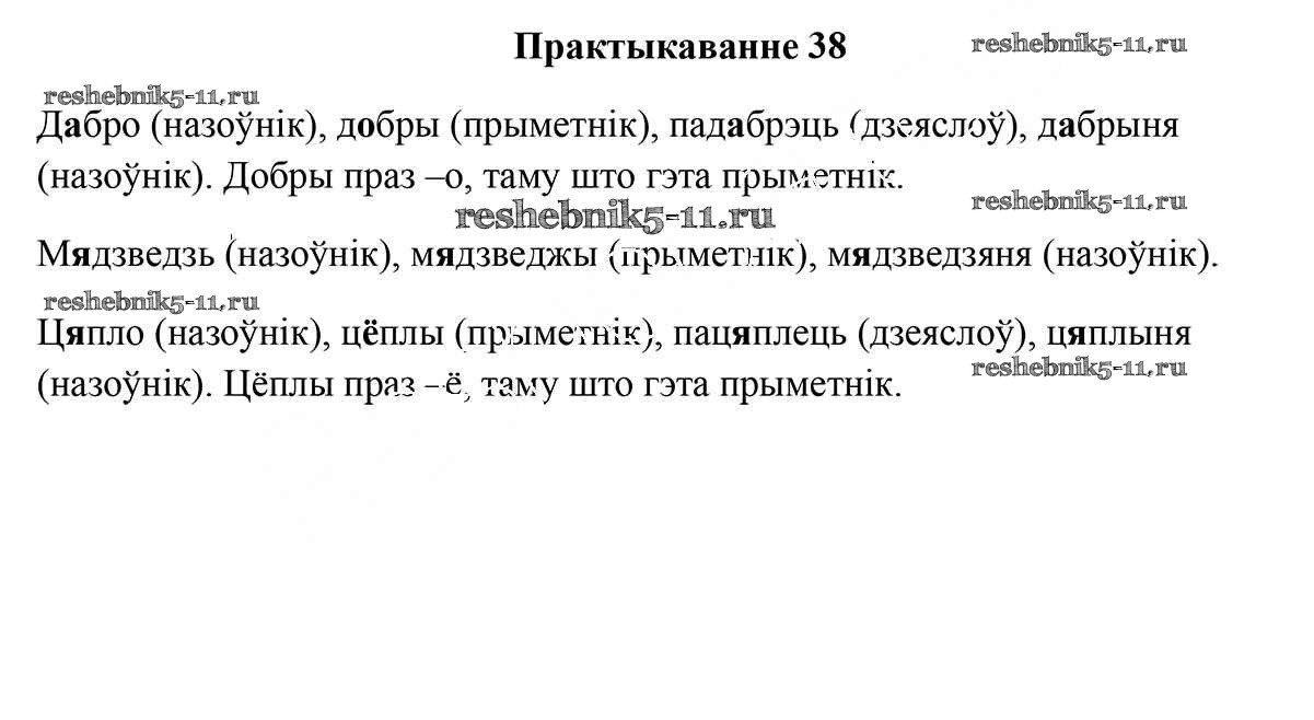 Готовая домашняя работа с ответами по Белорусскому языку за 5 класс Валочка, Зелянко, Мартынкевіч, Якуба Учебник Часть 1, 2 Национальный институт образования 2019 ФГОС - Часть 1. Практыкаванні 38