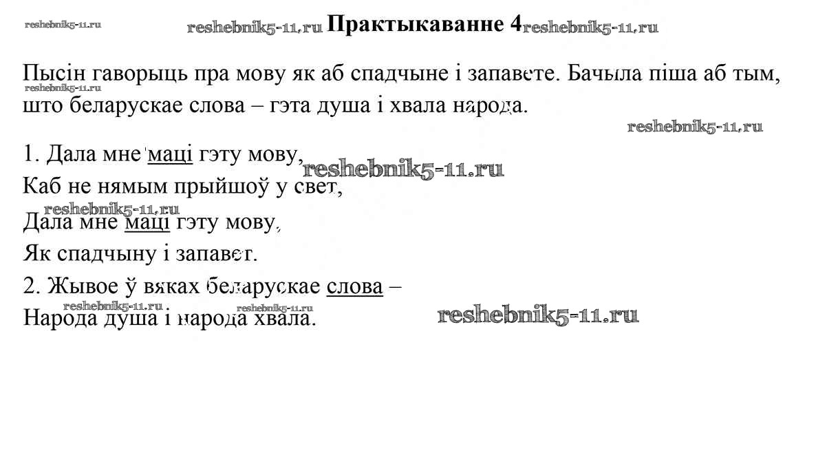 Готовая домашняя работа с ответами по Белорусскому языку за 5 класс Валочка, Зелянко, Мартынкевіч, Якуба Учебник Часть 1, 2 Национальный институт образования 2019 ФГОС - Часть 1. Практыкаванні 4