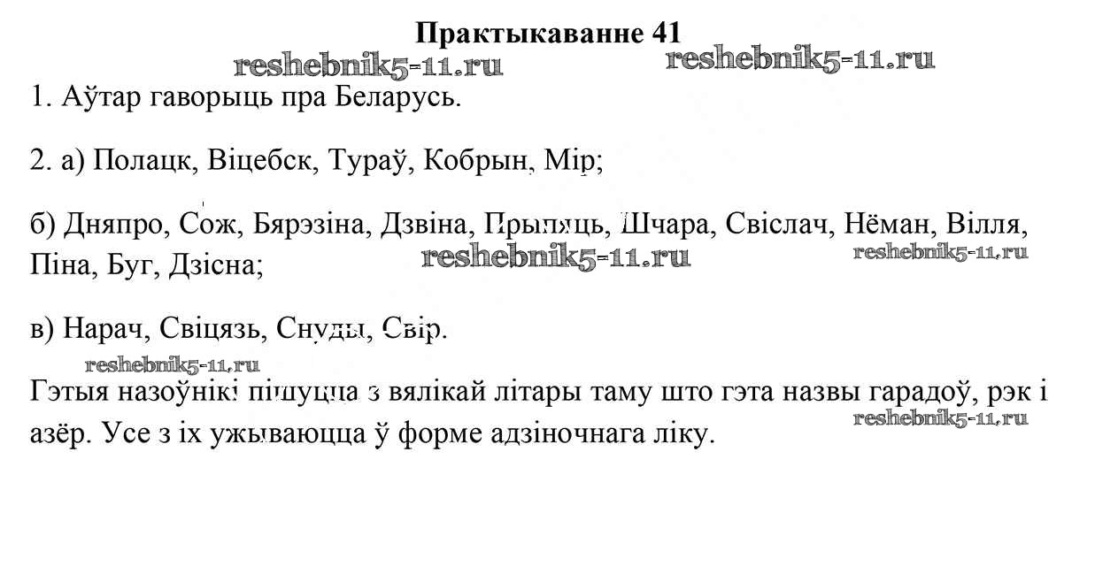 Готовая домашняя работа с ответами по Белорусскому языку за 5 класс Валочка, Зелянко, Мартынкевіч, Якуба Учебник Часть 1, 2 Национальный институт образования 2019 ФГОС - Часть 1. Практыкаванні 41