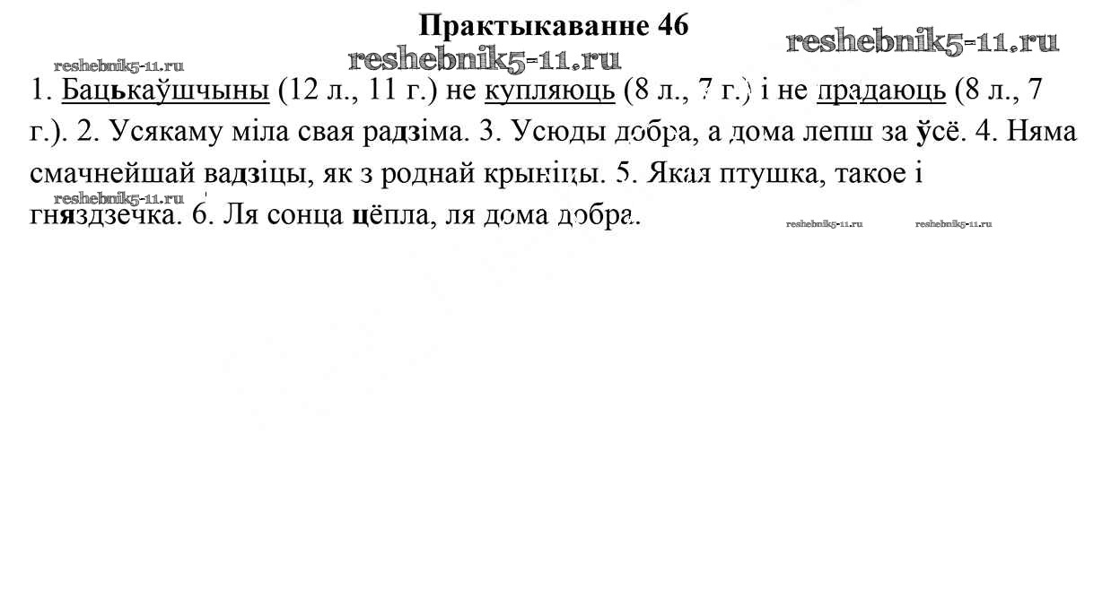Готовая домашняя работа с ответами по Белорусскому языку за 5 класс Валочка, Зелянко, Мартынкевіч, Якуба Учебник Часть 1, 2 Национальный институт образования 2019 ФГОС - Часть 1. Практыкаванні 46