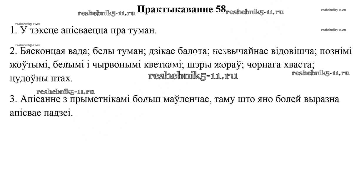 Готовая домашняя работа с ответами по Белорусскому языку за 5 класс Валочка, Зелянко, Мартынкевіч, Якуба Учебник Часть 1, 2 Национальный институт образования 2019 ФГОС - Часть 1. Практыкаванні 58