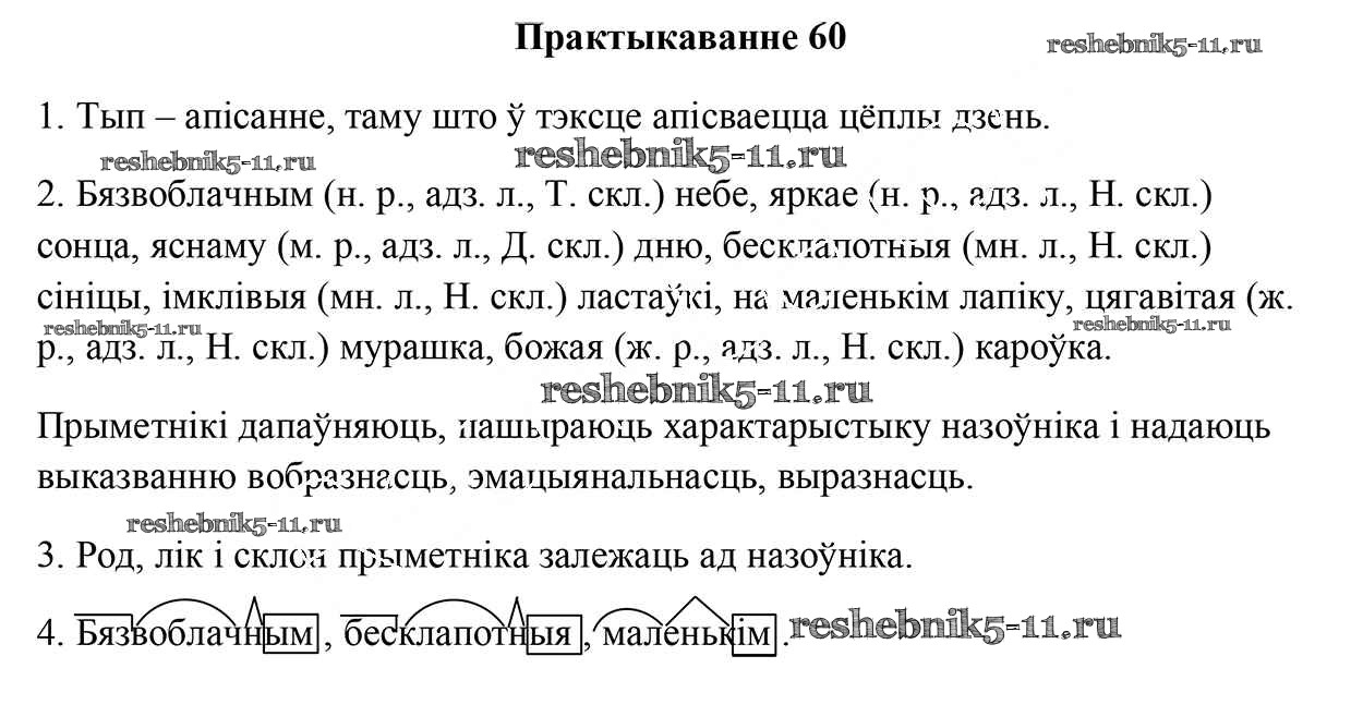 Готовая домашняя работа с ответами по Белорусскому языку за 5 класс Валочка, Зелянко, Мартынкевіч, Якуба Учебник Часть 1, 2 Национальный институт образования 2019 ФГОС - Часть 1. Практыкаванні 60