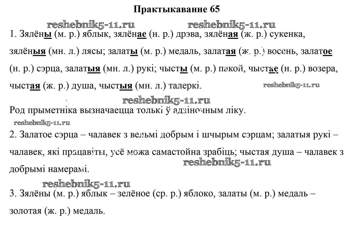 Готовая домашняя работа с ответами по Белорусскому языку за 5 класс Валочка, Зелянко, Мартынкевіч, Якуба Учебник Часть 1, 2 Национальный институт образования 2019 ФГОС - Часть 1. Практыкаванні 65