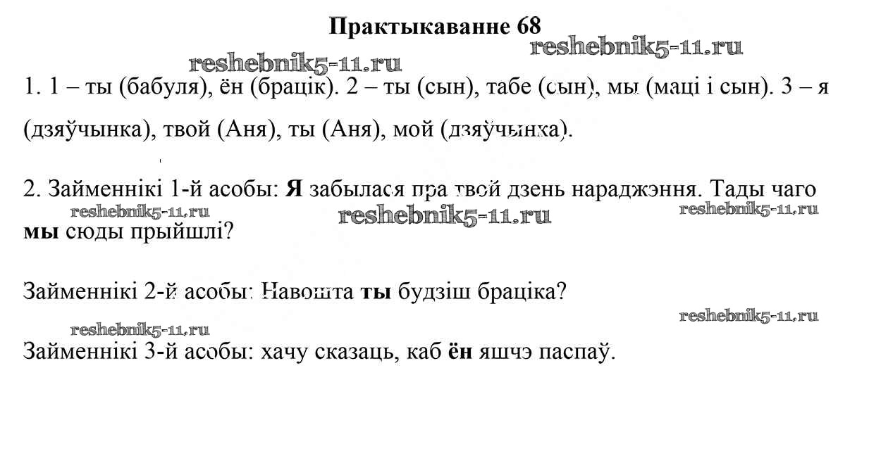 Готовая домашняя работа с ответами по Белорусскому языку за 5 класс Валочка, Зелянко, Мартынкевіч, Якуба Учебник Часть 1, 2 Национальный институт образования 2019 ФГОС - Часть 1. Практыкаванні 68