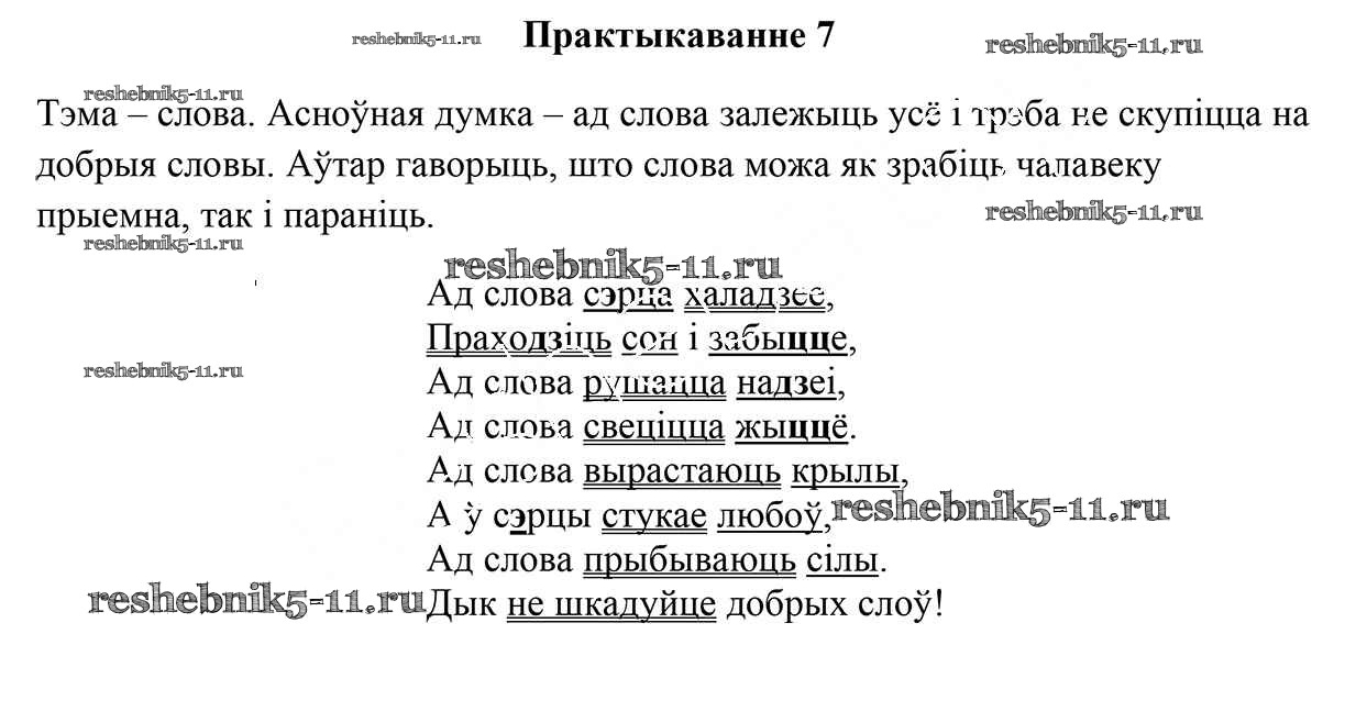 Готовая домашняя работа с ответами по Белорусскому языку за 5 класс Валочка, Зелянко, Мартынкевіч, Якуба Учебник Часть 1, 2 Национальный институт образования 2019 ФГОС - Часть 1. Практыкаванні 7