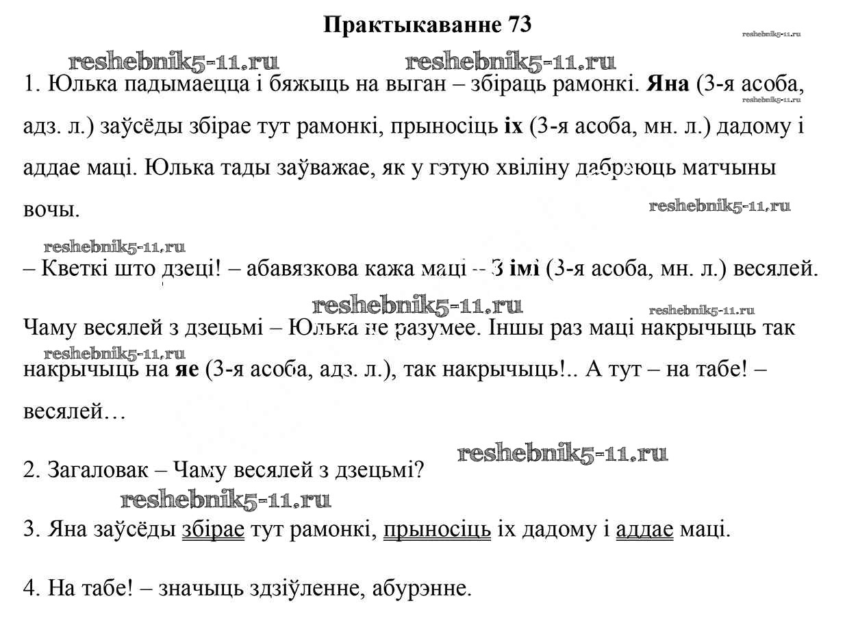 Готовая домашняя работа с ответами по Белорусскому языку за 5 класс Валочка, Зелянко, Мартынкевіч, Якуба Учебник Часть 1, 2 Национальный институт образования 2019 ФГОС - Часть 1. Практыкаванні 73