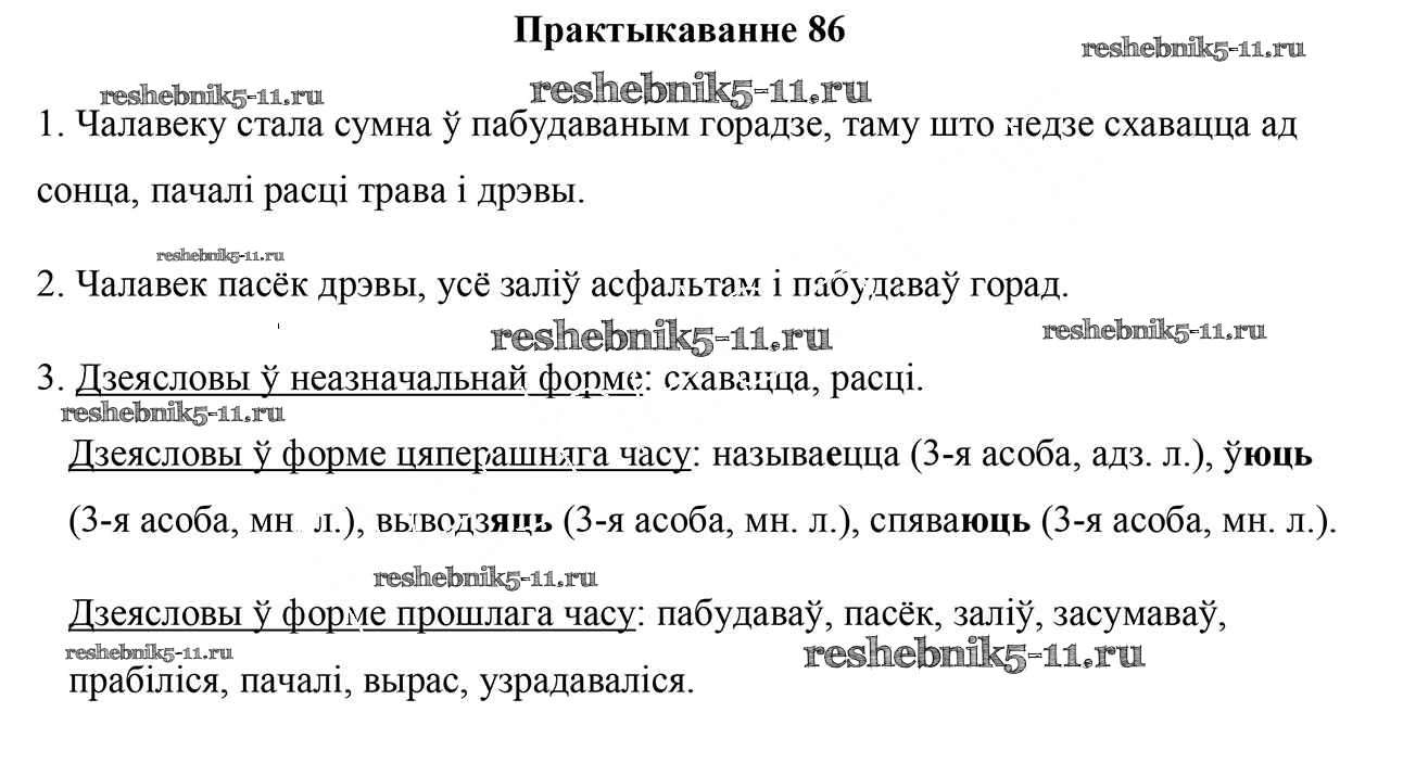 Готовая домашняя работа с ответами по Белорусскому языку за 5 класс Валочка, Зелянко, Мартынкевіч, Якуба Учебник Часть 1, 2 Национальный институт образования 2019 ФГОС - Часть 1. Практыкаванні 86