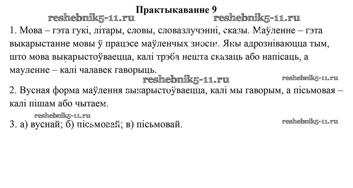 Готовая домашняя работа с ответами по Белорусскому языку за 5 класс Валочка, Зелянко, Мартынкевіч, Якуба Учебник Часть 1, 2 Национальный институт образования 2019 ФГОС - Часть 1. Практыкаванні 9