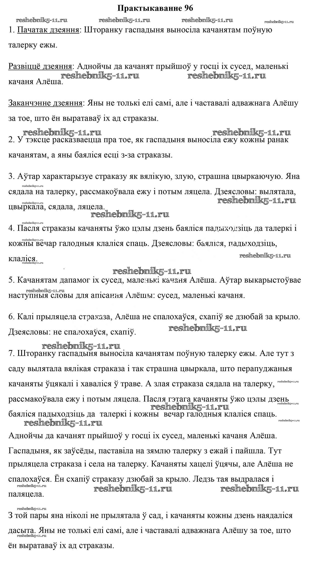 Готовая домашняя работа с ответами по Белорусскому языку за 5 класс Валочка, Зелянко, Мартынкевіч, Якуба Учебник Часть 1, 2 Национальный институт образования 2019 ФГОС - Часть 1. Практыкаванні 96