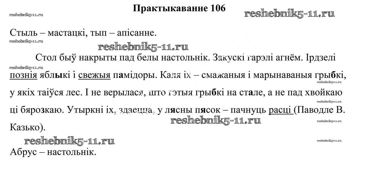 Белорусский язык за 5 класс Валочка Учебник Национальный институт образования часть 2. практыкаванні 106