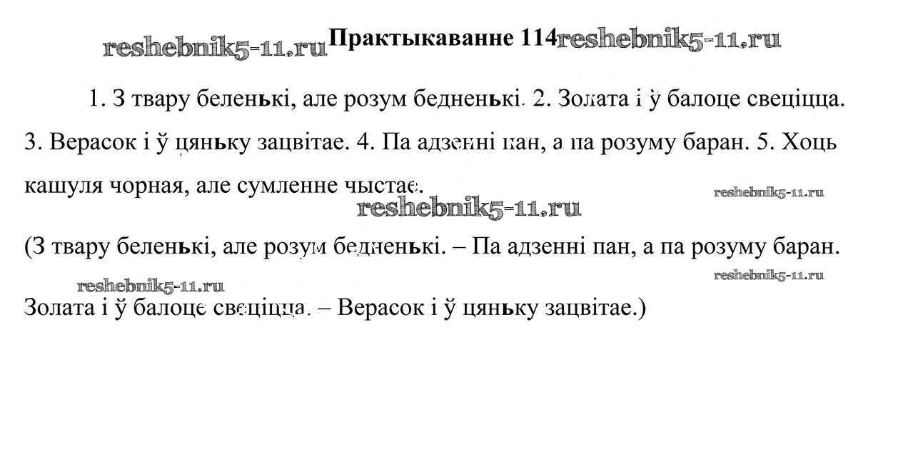 Готовая домашняя работа с ответами по Белорусскому языку за 5 класс Валочка, Зелянко, Мартынкевіч, Якуба Учебник Часть 1, 2 Национальный институт образования 2019 ФГОС - Часть 2. Практыкаванні 114