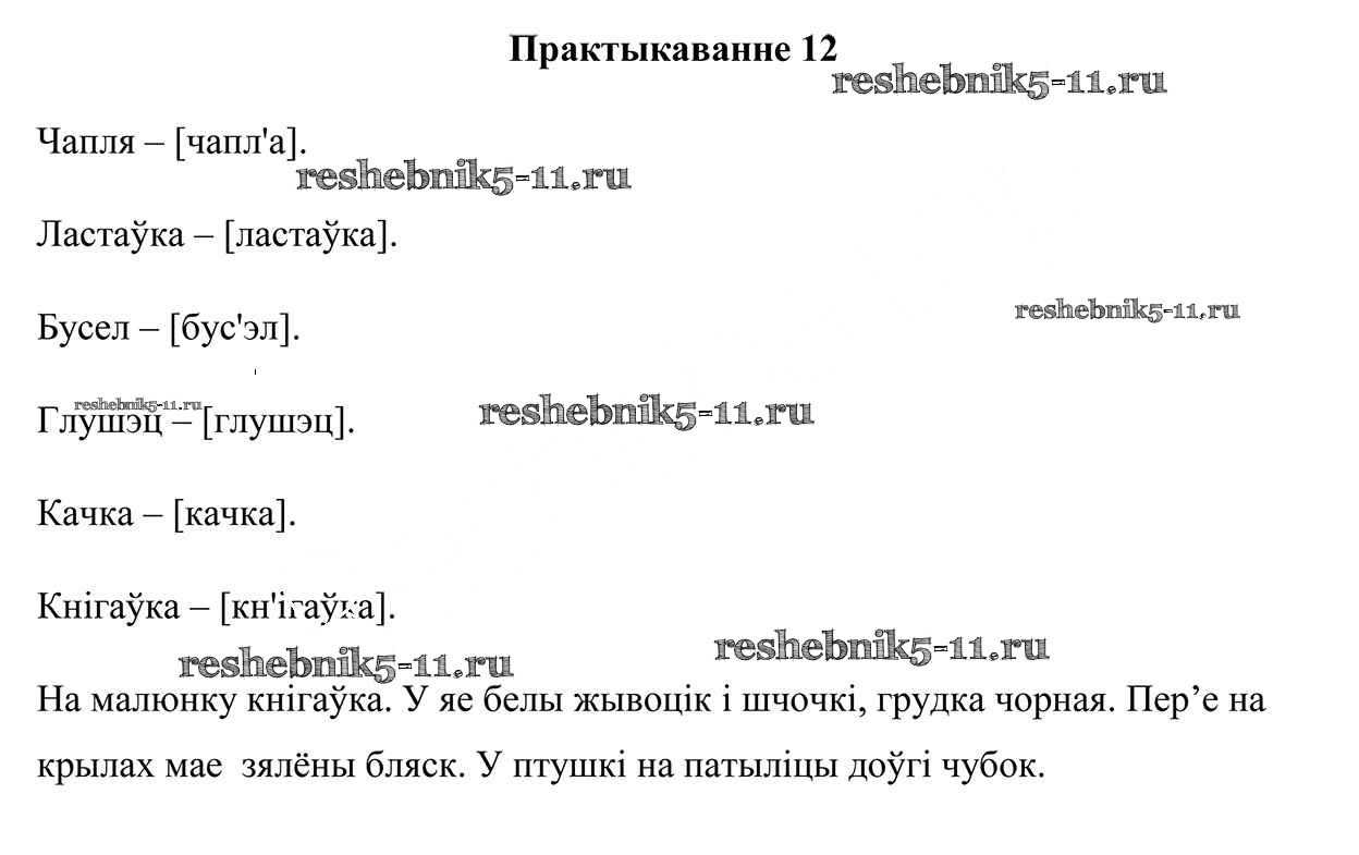 Готовая домашняя работа с ответами по Белорусскому языку за 5 класс Валочка, Зелянко, Мартынкевіч, Якуба Учебник Часть 1, 2 Национальный институт образования 2019 ФГОС - Часть 2. Практыкаванні 12