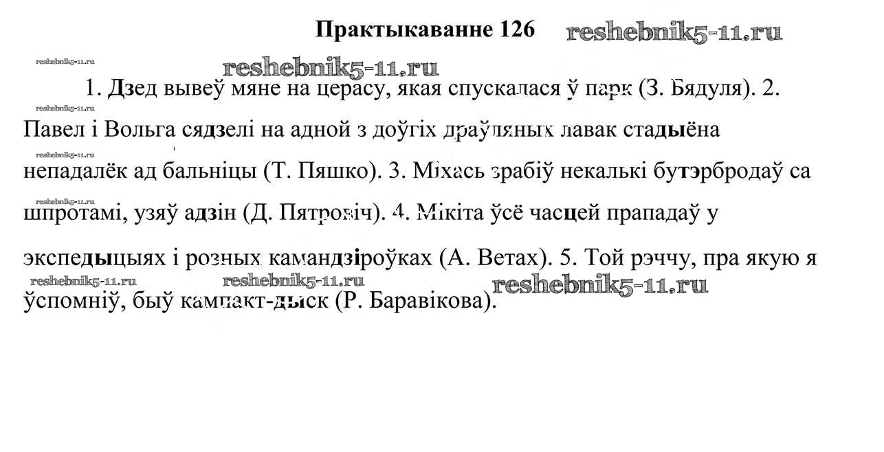 Готовая домашняя работа с ответами по Белорусскому языку за 5 класс Валочка, Зелянко, Мартынкевіч, Якуба Учебник Часть 1, 2 Национальный институт образования 2019 ФГОС - Часть 2. Практыкаванні 126