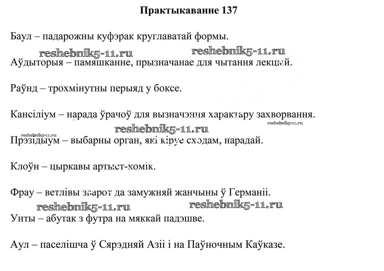 Готовая домашняя работа с ответами по Белорусскому языку за 5 класс Валочка, Зелянко, Мартынкевіч, Якуба Учебник Часть 1, 2 Национальный институт образования 2019 ФГОС - Часть 2. Практыкаванні 137