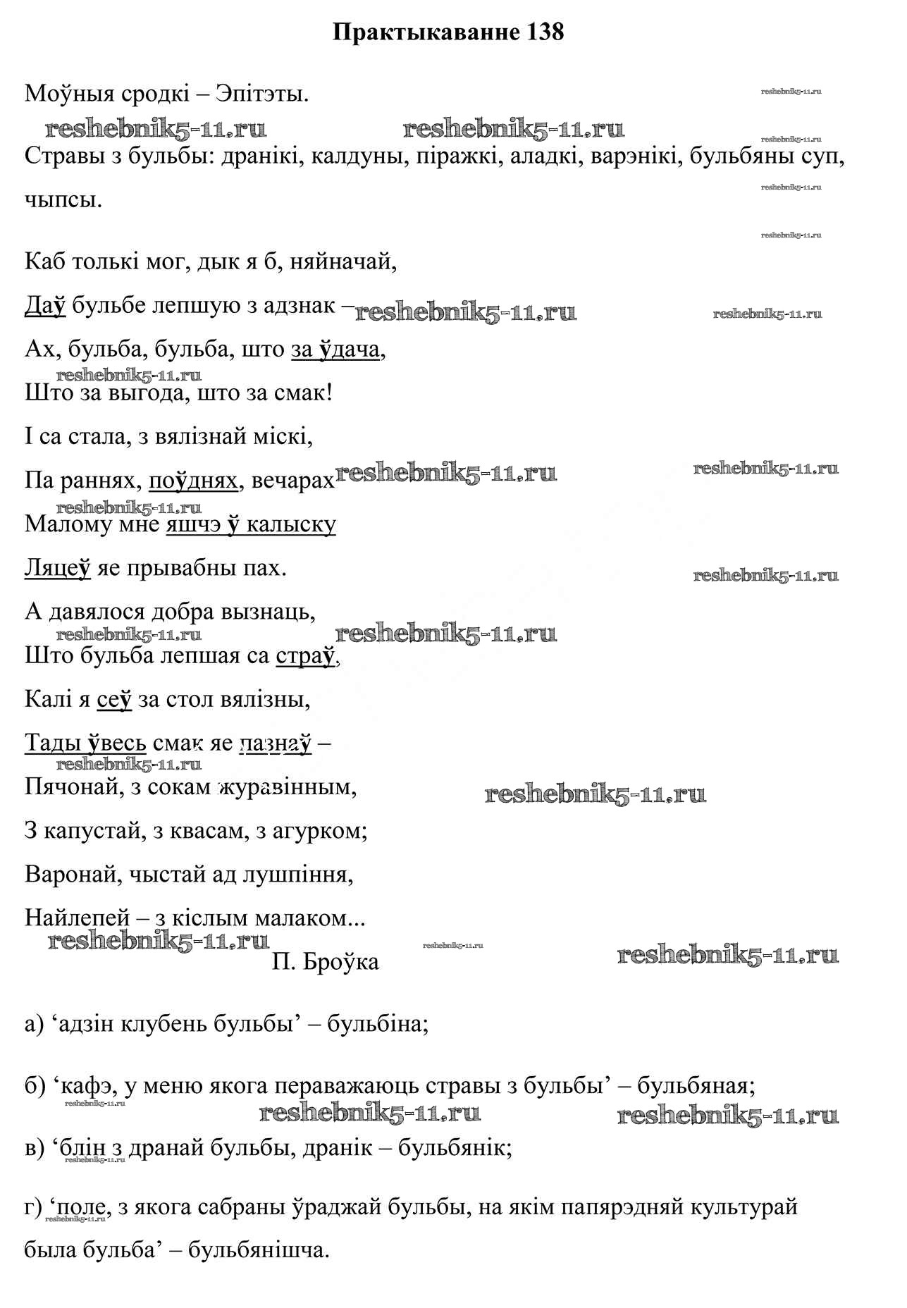 Готовая домашняя работа с ответами по Белорусскому языку за 5 класс Валочка, Зелянко, Мартынкевіч, Якуба Учебник Часть 1, 2 Национальный институт образования 2019 ФГОС - Часть 2. Практыкаванні 138