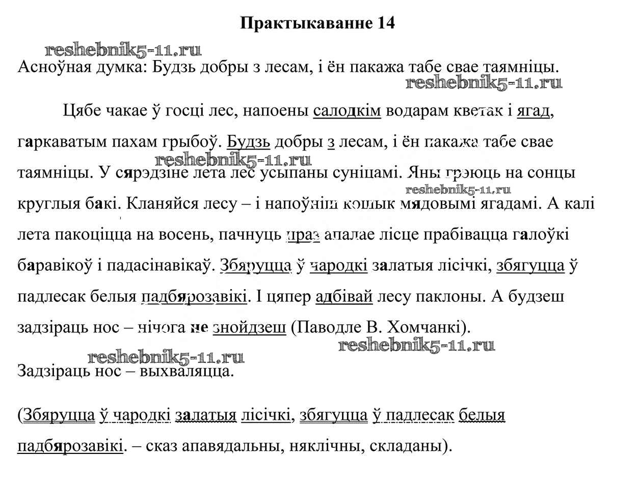 Готовая домашняя работа с ответами по Белорусскому языку за 5 класс Валочка, Зелянко, Мартынкевіч, Якуба Учебник Часть 1, 2 Национальный институт образования 2019 ФГОС - Часть 2. Практыкаванні 14