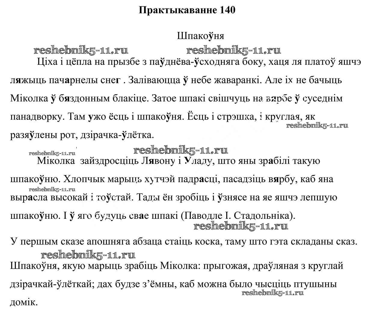 Готовая домашняя работа с ответами по Белорусскому языку за 5 класс Валочка, Зелянко, Мартынкевіч, Якуба Учебник Часть 1, 2 Национальный институт образования 2019 ФГОС - Часть 2. Практыкаванні 140