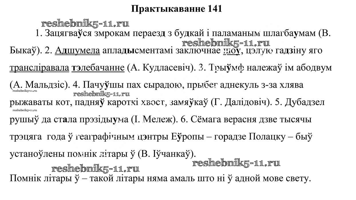 Готовая домашняя работа с ответами по Белорусскому языку за 5 класс Валочка, Зелянко, Мартынкевіч, Якуба Учебник Часть 1, 2 Национальный институт образования 2019 ФГОС - Часть 2. Практыкаванні 141