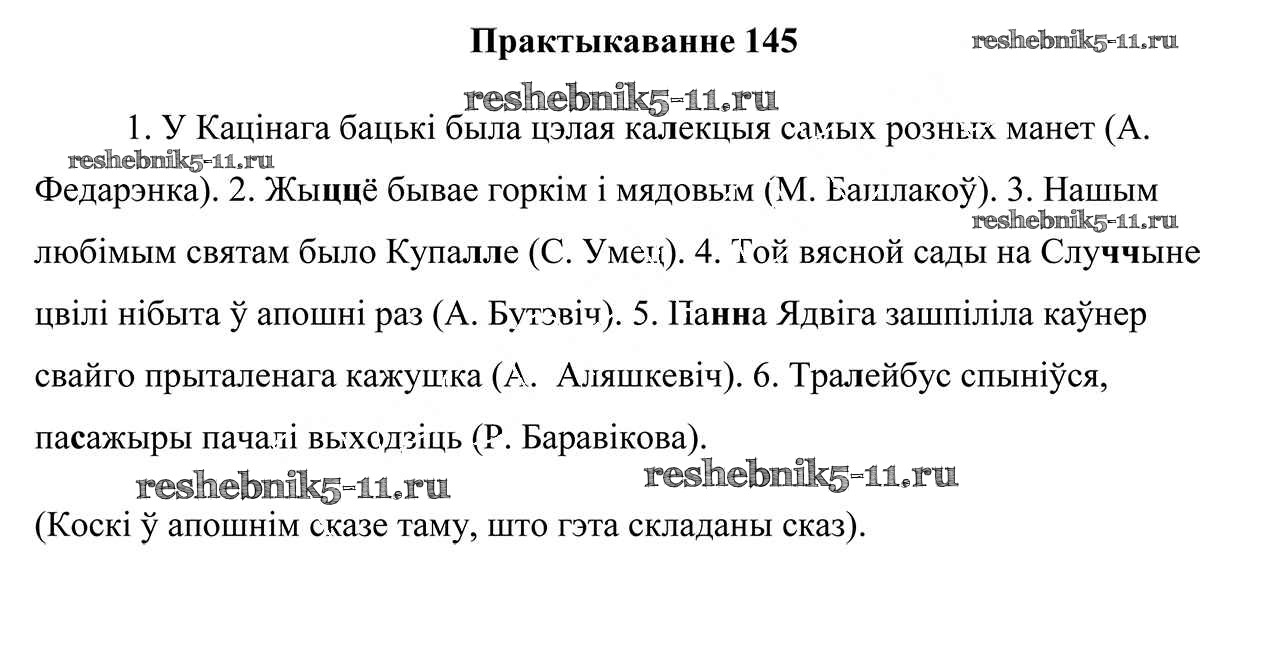 Готовая домашняя работа с ответами по Белорусскому языку за 5 класс Валочка, Зелянко, Мартынкевіч, Якуба Учебник Часть 1, 2 Национальный институт образования 2019 ФГОС - Часть 2. Практыкаванні 145