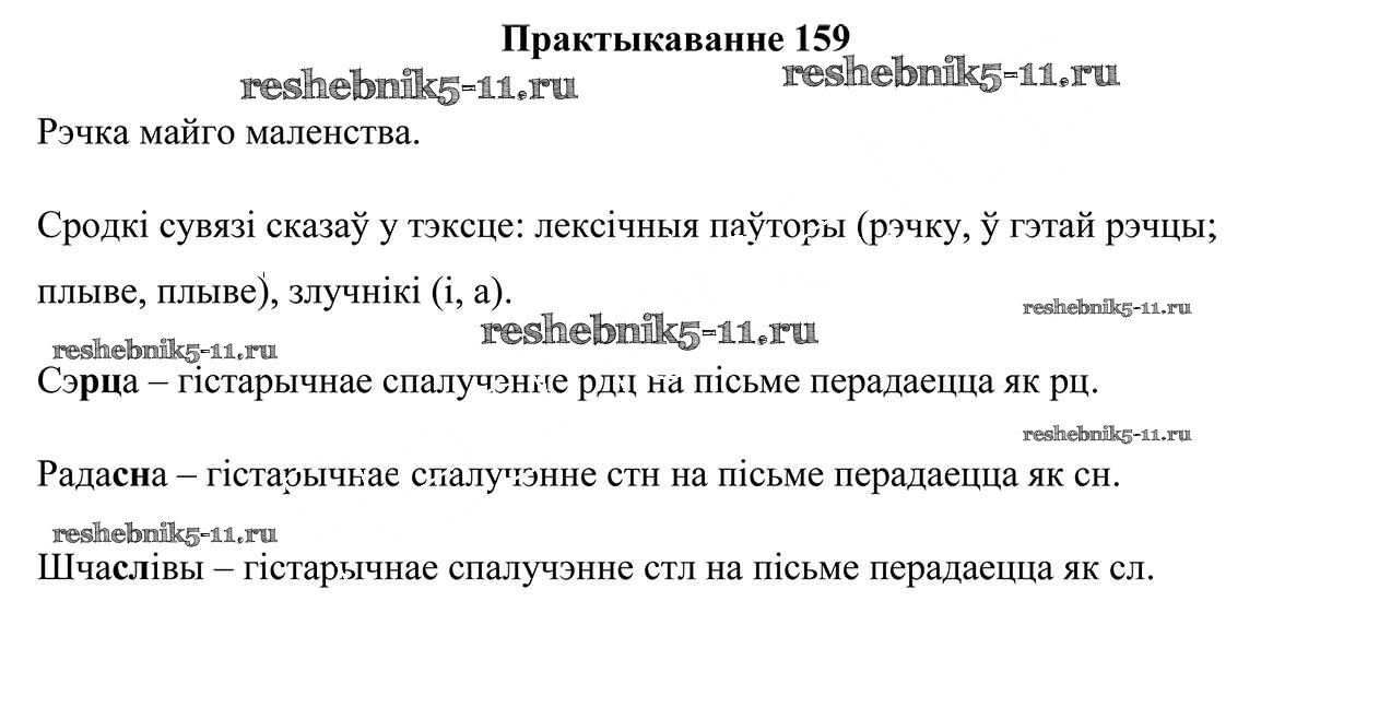 Готовая домашняя работа с ответами по Белорусскому языку за 5 класс Валочка, Зелянко, Мартынкевіч, Якуба Учебник Часть 1, 2 Национальный институт образования 2019 ФГОС - Часть 2. Практыкаванні 159