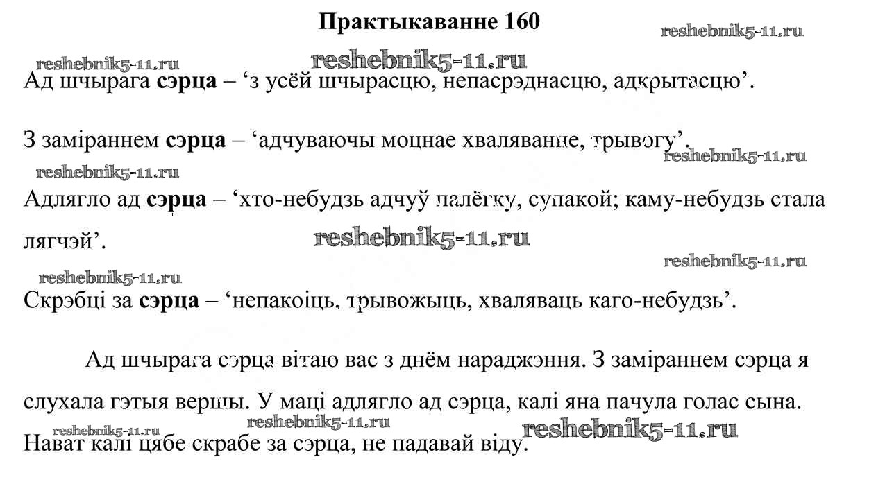 Готовая домашняя работа с ответами по Белорусскому языку за 5 класс Валочка, Зелянко, Мартынкевіч, Якуба Учебник Часть 1, 2 Национальный институт образования 2019 ФГОС - Часть 2. Практыкаванні 160
