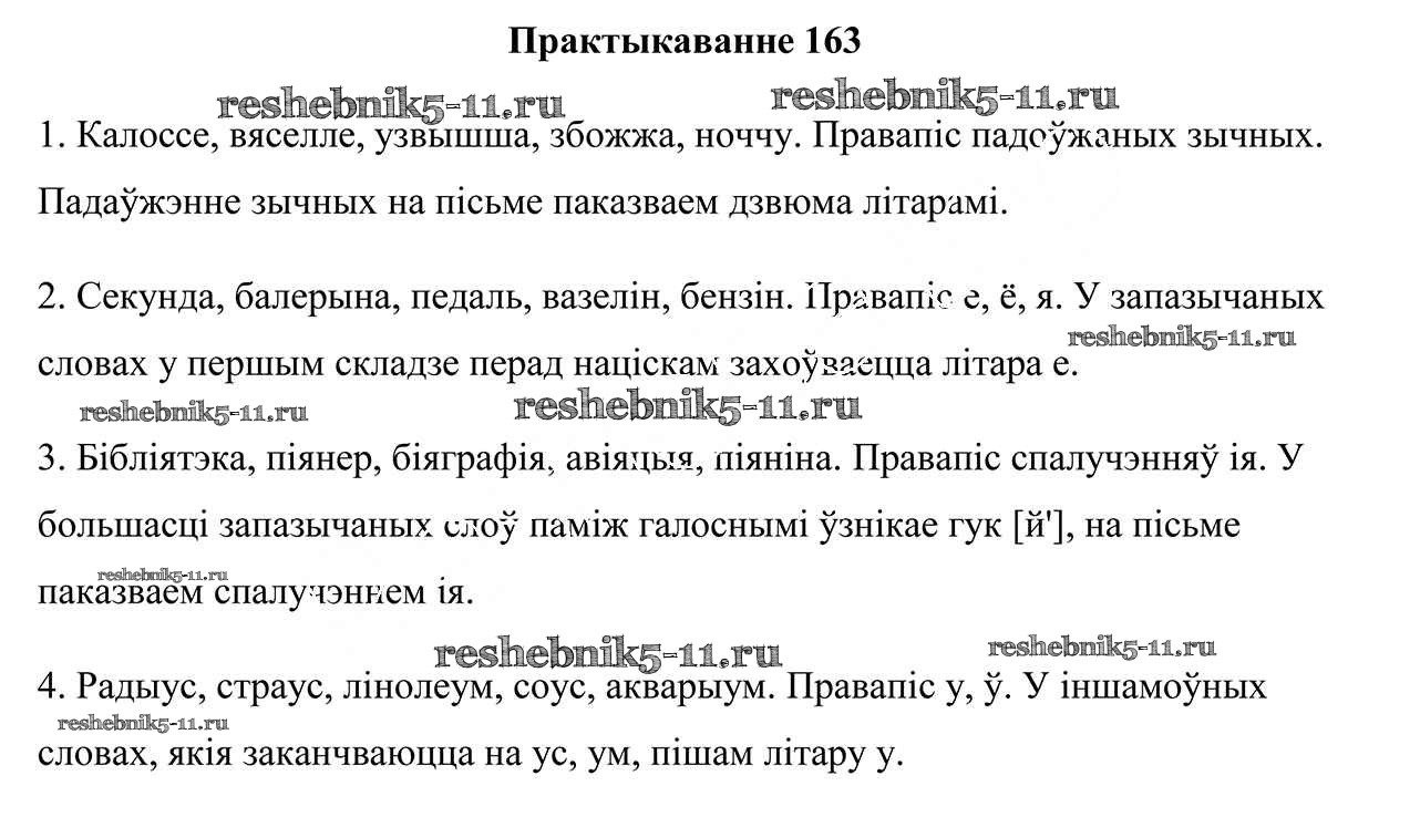 Готовая домашняя работа с ответами по Белорусскому языку за 5 класс Валочка, Зелянко, Мартынкевіч, Якуба Учебник Часть 1, 2 Национальный институт образования 2019 ФГОС - Часть 2. Практыкаванні 163