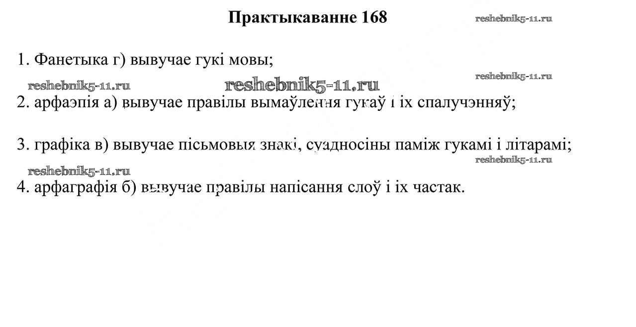 Готовая домашняя работа с ответами по Белорусскому языку за 5 класс Валочка, Зелянко, Мартынкевіч, Якуба Учебник Часть 1, 2 Национальный институт образования 2019 ФГОС - Часть 2. Практыкаванні 168