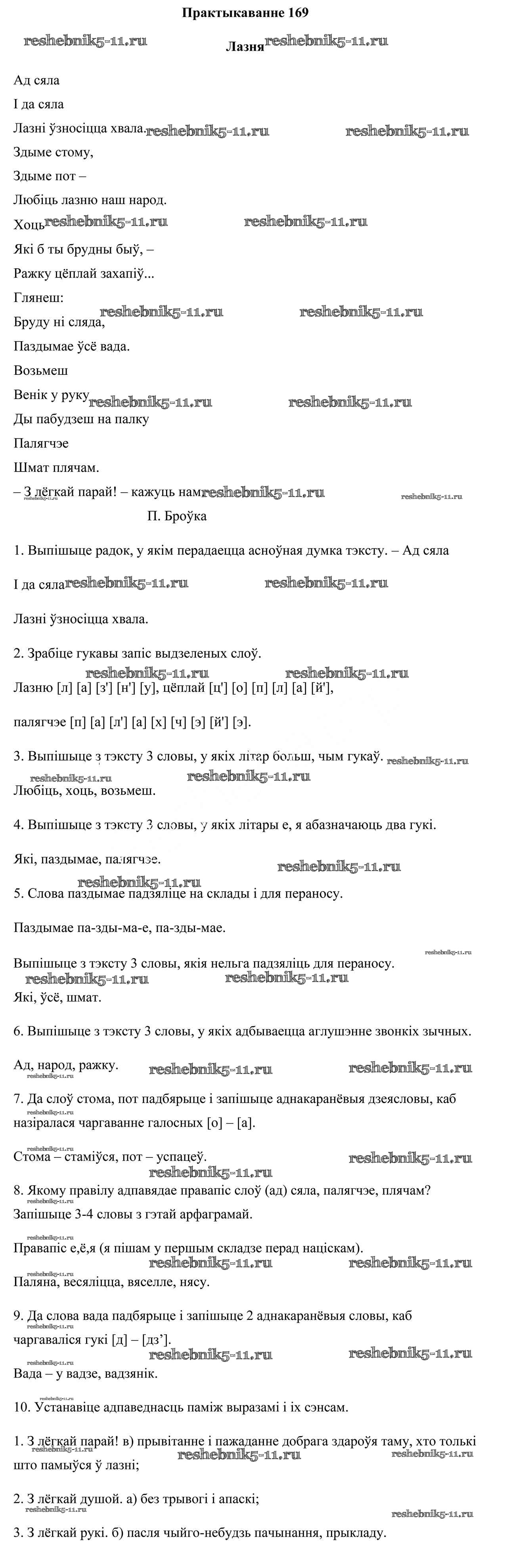 Готовая домашняя работа с ответами по Белорусскому языку за 5 класс Валочка, Зелянко, Мартынкевіч, Якуба Учебник Часть 1, 2 Национальный институт образования 2019 ФГОС - Часть 2. Практыкаванні 169