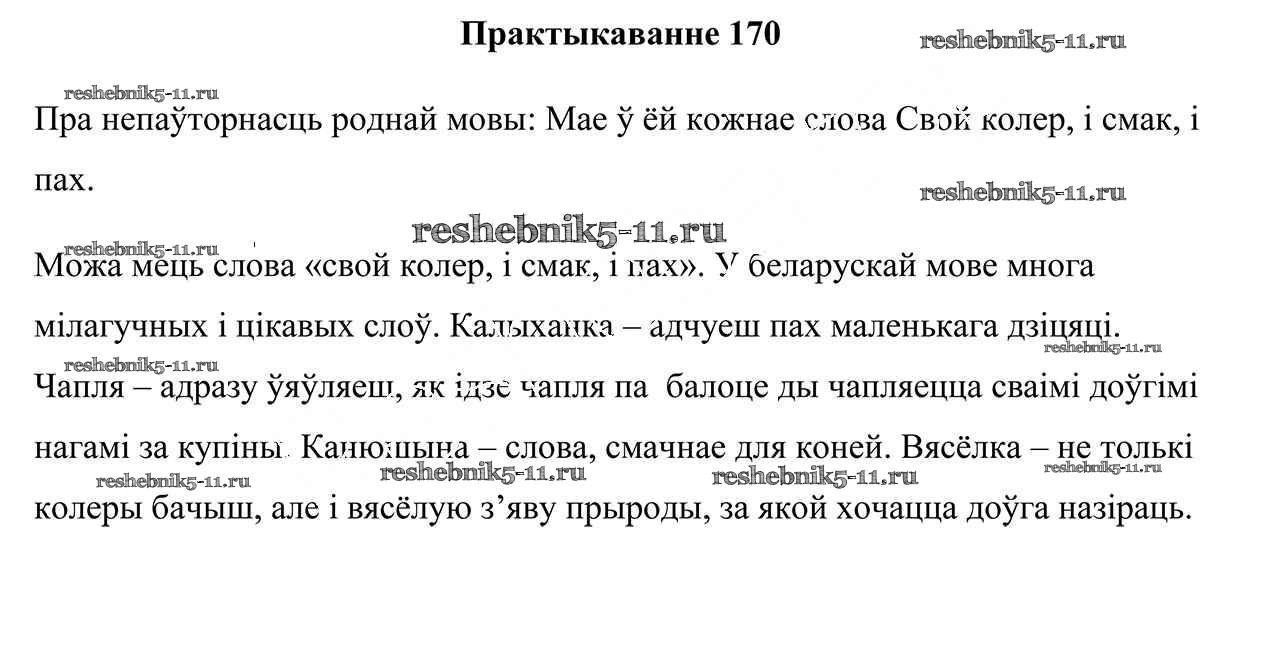 Готовая домашняя работа с ответами по Белорусскому языку за 5 класс Валочка, Зелянко, Мартынкевіч, Якуба Учебник Часть 1, 2 Национальный институт образования 2019 ФГОС - Часть 2. Практыкаванні 170