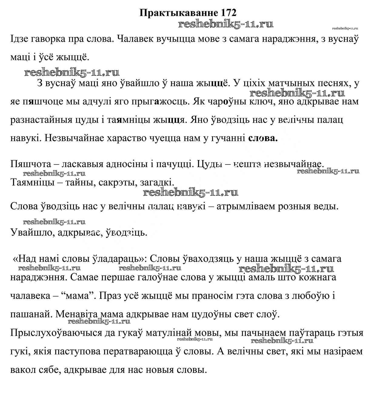Готовая домашняя работа с ответами по Белорусскому языку за 5 класс Валочка, Зелянко, Мартынкевіч, Якуба Учебник Часть 1, 2 Национальный институт образования 2019 ФГОС - Часть 2. Практыкаванні 172