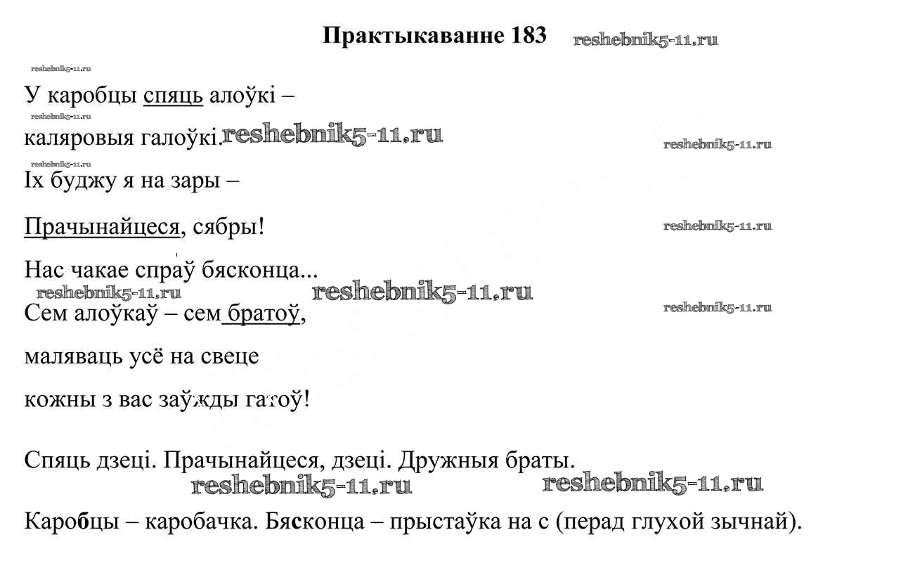 Готовая домашняя работа с ответами по Белорусскому языку за 5 класс Валочка, Зелянко, Мартынкевіч, Якуба Учебник Часть 1, 2 Национальный институт образования 2019 ФГОС - Часть 2. Практыкаванні 183