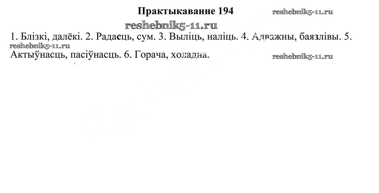 Готовая домашняя работа с ответами по Белорусскому языку за 5 класс Валочка, Зелянко, Мартынкевіч, Якуба Учебник Часть 1, 2 Национальный институт образования 2019 ФГОС - Часть 2. Практыкаванні 194