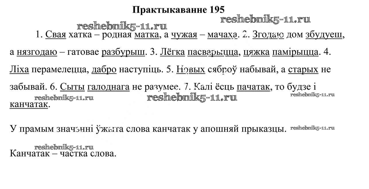 Готовая домашняя работа с ответами по Белорусскому языку за 5 класс Валочка, Зелянко, Мартынкевіч, Якуба Учебник Часть 1, 2 Национальный институт образования 2019 ФГОС - Часть 2. Практыкаванні 195